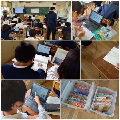 平野図書館から借りた図書や1人1台端末を使って、自分が興味を持ったものについて、和と洋に分類してまとめています。
