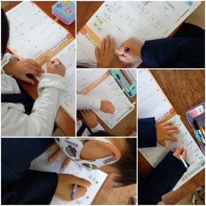 ドリル教材を使って、繰り返し漢字練習に取り組んでいます。