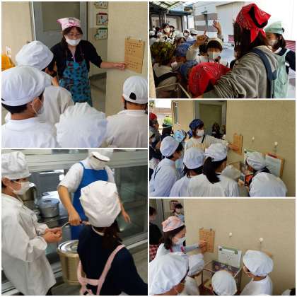 展示食前では、先生から「から揚げ」と「竜田揚げ」の違いについて話を聞いていました。