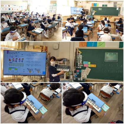 旋律を階名唱してフレーズを覚えてから、鍵盤ハーモニカの演奏しています。