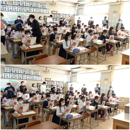 姿勢よく大きな声でゆっくり・はっきり音読ができています。