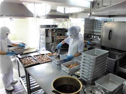 あかうおのしょうゆだれかけは、塩で下味をつけたあかうおを焼き物機で焼き、料理酒・みりん・うすくちしょうゆを合わせたタレをかけています。ごはんのすすむ味に仕上がっていました。