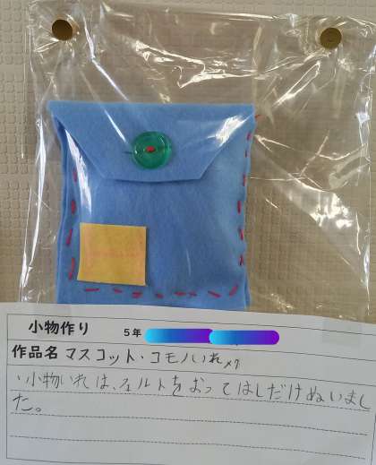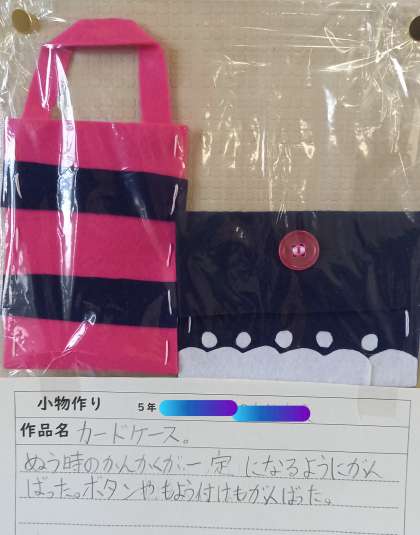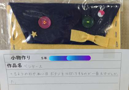 5年生から始まった「家庭科」の学習で身につけた『裁縫の基本』を活用して、小物づくりに取り組みました。