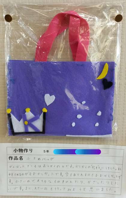 5年生から始まった「家庭科」の学習で身につけた『裁縫の基本』を活用して、小物づくりに取り組みました。