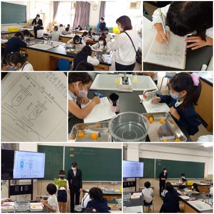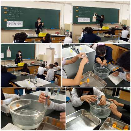 理科室では、4年生が実験をしています。