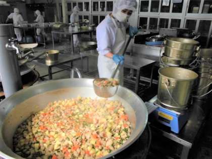 豚肉とじゃがいもの煮ものは、豚肉・じゃがいも・つなこんにゃく・たまねぎ・にんじん・さんどまめを使用した煮もので、じゃがいもがホクホクしていました。