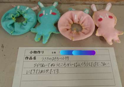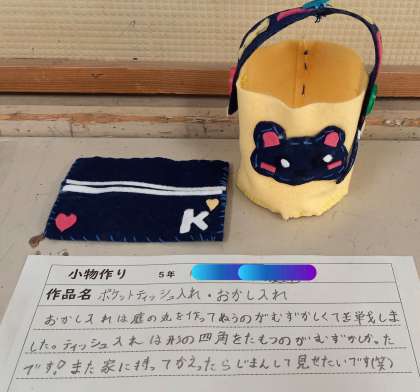 5年生から始まった「家庭科」の学習で身につけた『裁縫の基本』を使って、小物づくりに取り組みました。
