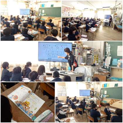2年生が、お祭りにふさわしいリズムの組み合わせを考えています。