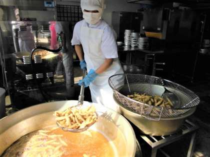 わかさぎフライは、たっぷりの油でカラッと揚げています。