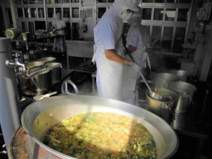 スープは、豚肉・にんじん・たまねぎ・キャベツ・さんどまめを使用しています。