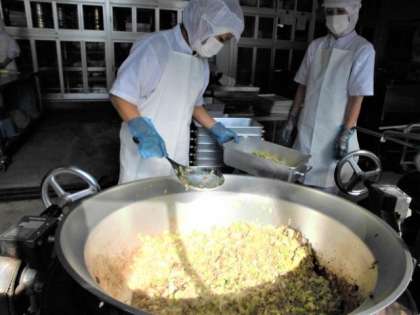いわしのつみれ汁は、しょうが汁・料理酒で下味をつけたいわしだんご・だいこん・にんじん・ごぼう・青みにみつばを使用しています。みつばのいい香りがしていました〜。