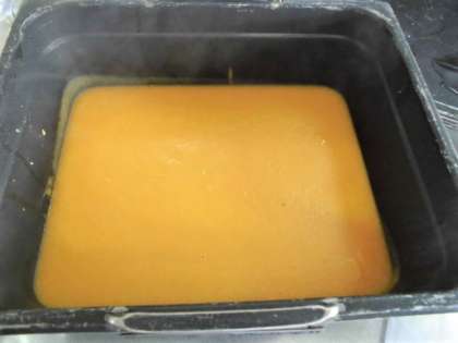 かぼちゃういろうは、かぼちゃのペースト・上新粉・砂糖・水を混ぜ合わせ、焼き物機で蒸して作っている和風デザートです。
