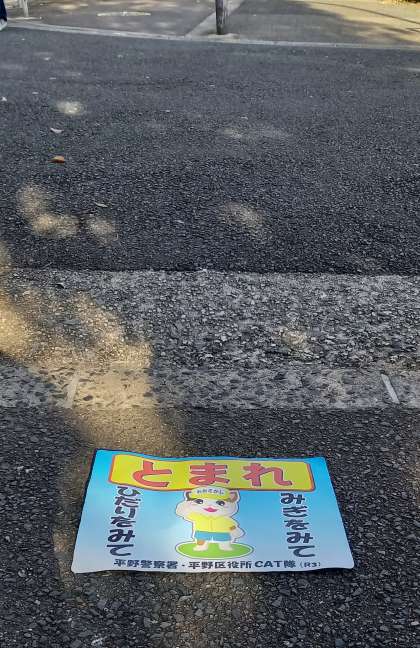 平野警察署・平野区役所CAT隊の方々と一緒に、登下校路で特に安全に気を付けてほしいところを確認しました。