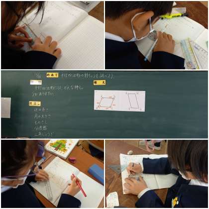 平行四辺形には、どんな特徴があるのかを調べています。
