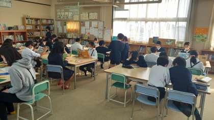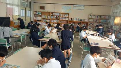 みんなの前で「紙芝居」を発表する子どもは、読む練習をしていました。