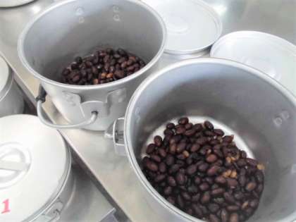 うずら豆のグラッセは、うずら豆を釜でコトコト柔らかくなるまで煮て、砂糖・塩・バターで味つけする洋風の煮ものです。バターを使用することで豆にツヤが出ていました。