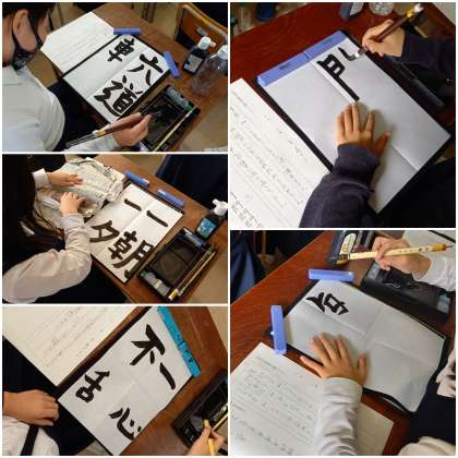 自分で調べた「四字熟語」を毛筆で書いています。