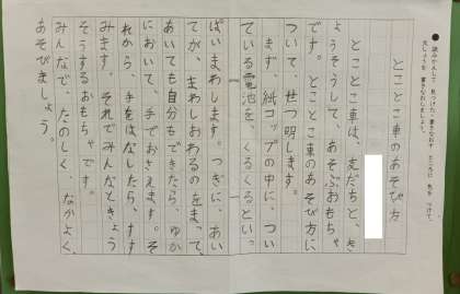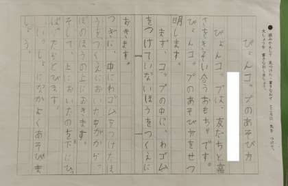 生活科で作った、おもちゃの遊び方を紹介しています。