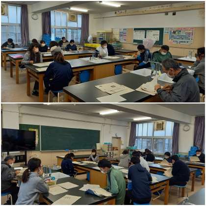 授業について、若手教員が集まり研修しています。