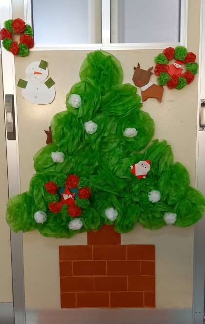 教室の扉に、素敵なクリスマスツリーを見つけました。