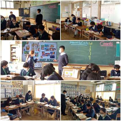 来週にある大阪市小学校経年調査に向けて、習った英単語を振り返り、繰り返し英単語を発音しています。