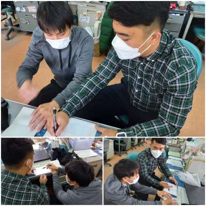 担任とC-NETが、英語の授業の進め方について打ち合わせをしています。