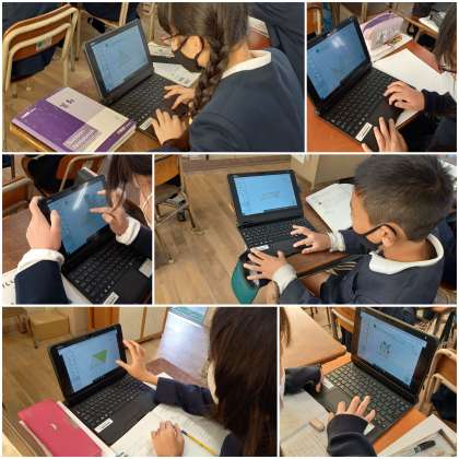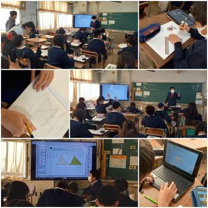 子ども達はデジタルコンテンツを活用し、「長方形」「平行四辺形」に変形させることで、『三角形の面積』を求められることに気づくことができました。