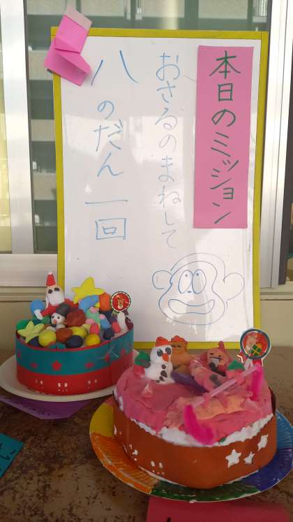 今日は、なんと「おさるさんのまね」をするようにミッションが出ています。