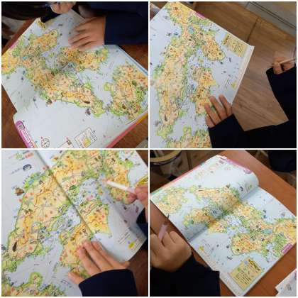地図マスターを目指して、地図を使った学習に取り組んでいます。