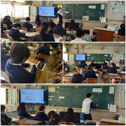 台形を平行四辺形に変形させると、台形の面積の求め方を考えています。