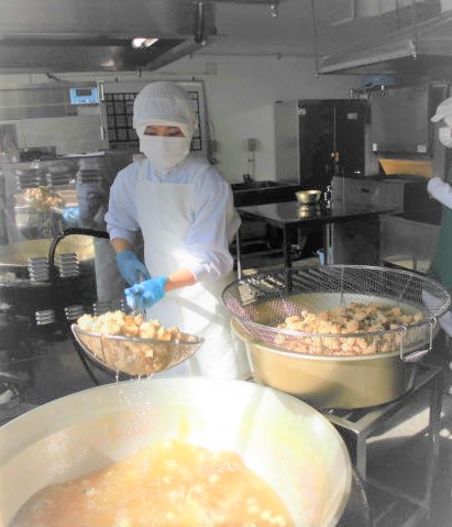 さけのマリネは、塩・こしょうで下味をつけ、でんぷんをまぶして揚げたさけに、たまねぎの入ったマリネ液をからませています。