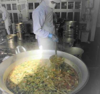 うすくず汁は、鶏肉・はくさい・だいこん・にんじんを使用し、でんぷんでとろみをつけ、青みにみつばを使っています。寒い日にぴったりな汁ものでした。