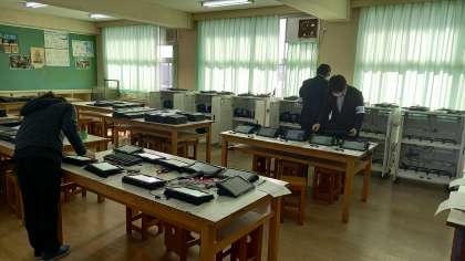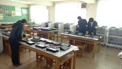 子ども達が使っている、学習者用端末の設定変更作業が始まりました。