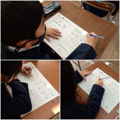 問題をよく読み、実験したことを思い出しながらテストに取り組んでいます。