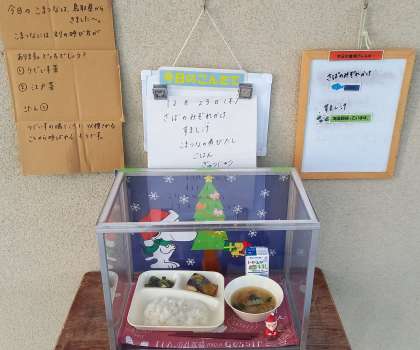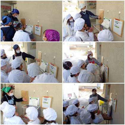 1年生が、調理員さん達に「2学期の間、おいしい給食をありがとうございました。」とお礼を言っていました。