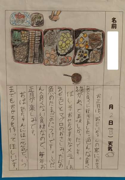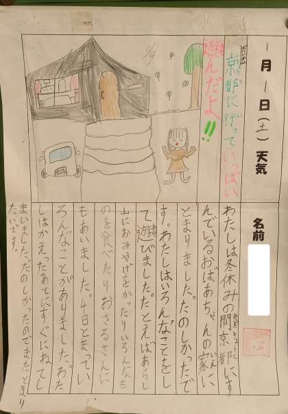 子ども達が冬休みを楽しんでいた様子が、絵や文から伝わってきます。