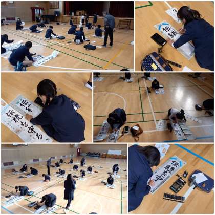 手本をよく見て、一文字ずつゆっくりていねいに書いています。