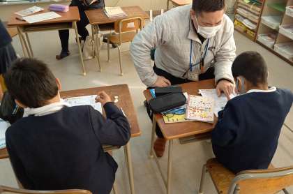 先生のアドバイスを受け、課題に一生懸命取り組んでいます。