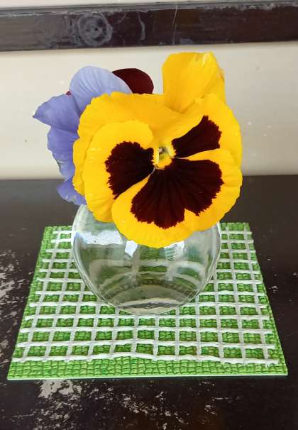 管理作業員室前には、かわいらしい花が生けられています。