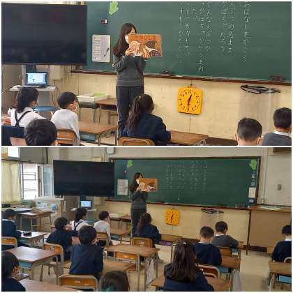 お楽しみの紙芝居タイムでは、みんなとても集中して聞いています。