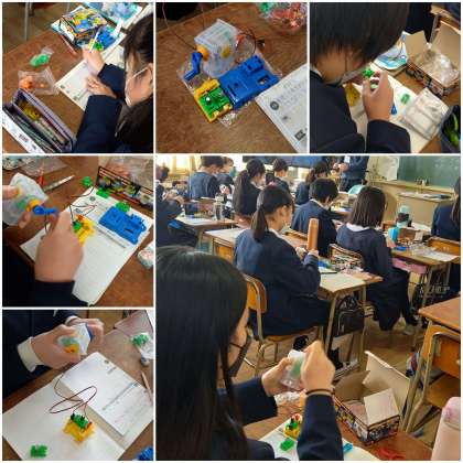 コンデンサーに同じだけの電気を蓄え、豆電球と発光ダイオードの点灯時間が、どちらが長いのかを実験しています。