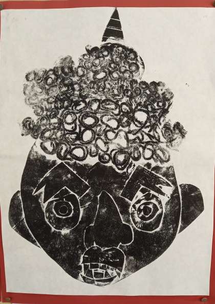紙版画で「オニ」を作りました。