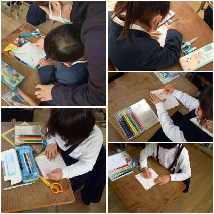 かざぐるまを作っています。
