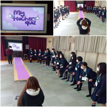 今日は『My teacher quiz』を通して、英語に親しみました。