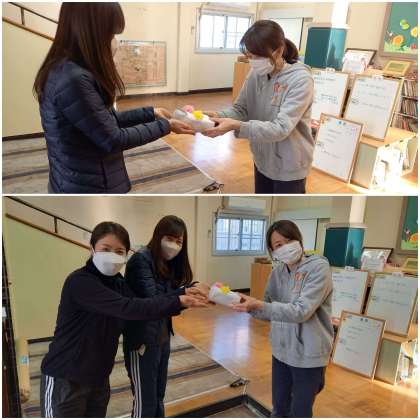担任の先生が、代表で瓜破北幼稚園に届けにいきました。