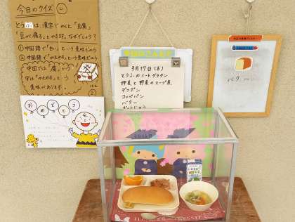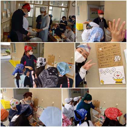 今日の献立は、『押し麦と野菜のスープ煮、豆腐のミートグラタン、デコポン、コッペパン、バター、牛乳』です。