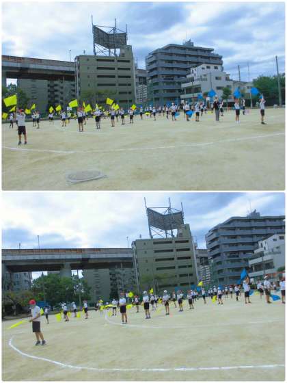運動会の練習が始まりました。水分をしっかり取り、休憩もしながら、徐々に取り組んでいます。