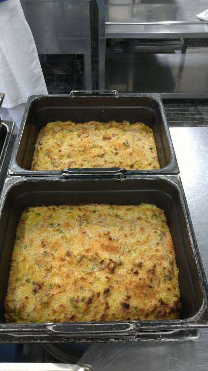 いい焼き色がついた豆乳マカロニグラタンでした。