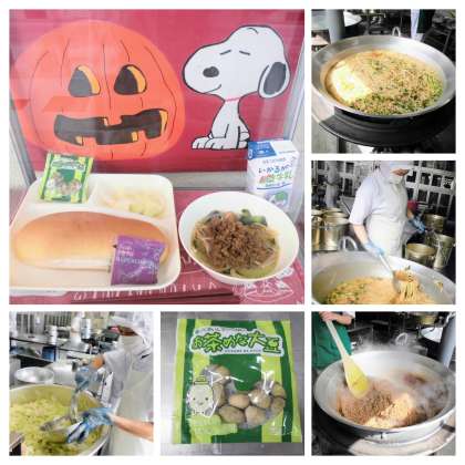 献立は、タンタンめん・あっさりキャベツ・まっ茶大豆・コッペパン・ブルーベリージャム・牛乳でした。