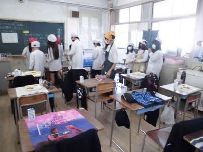 6年生は、1年生の配膳をしっかり手伝っています。だから、クラスの配膳は少ない人数で手早く上手に配膳をしていました。さすが、6年生。カレーのルーもご飯も大盛ですが、しっかりモリモリ食べていました。